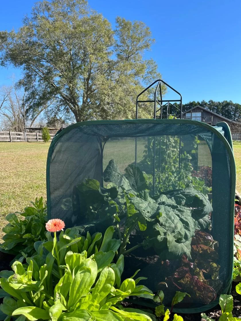 Self-supporting mesh enclosures keep out insects, birds and animal pests like rabbits — even dogs and cats — while letting in light and rain. Fine mesh allows good air circulation while protecting plants from harsh, drying winds. Pop-Ups install in minutes and fit snugly over 4′ x 4′ or 4′ x 8′ raised beds; they can also be used over Grow Beds and in-ground plants. Built-in corner loops and anchoring stakes (included) let you secure Pop-Ups into the ground. Covers fold flat for easy storage. The 48″ height is ideal for larger plants like peppers, potatoes, broccoli and blueberries.