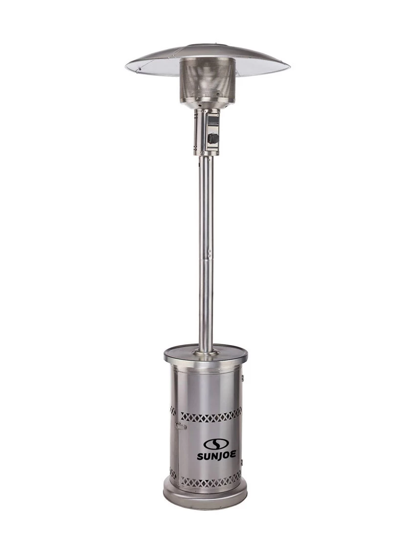 TURN UP THE HEAT. Chill out plus cozy up in the great outdoors in comfort and style with the 48,000 BTU Stainless Steel Propane Heater from Sun Joe – the perfect addition to any patio, deck, or outdoor lounge space. This floorstanding propane heater can warm up to 250 sq. ft. to a comfortable temperature, with an adjustable heat output of 25,000 BTUs to 48,000 BTUs, so you and your family can stay comfortably warm on even the chilliest nights – for up to 7-hours (on a 20 Gal. propane tank. Sold separately.) Just insert a propane tank into the storage base, connect the included LPG hose, and turn the knob to turn up the heat. The domed, hooded metal top keeps the heat from rising away from your outdoor space, and warms a radius of 9 ft. around the unit. Plus, the 30 in. high mini table is perfect for holding drinks plus beverages. Sun Joe is constructed from solid stainless steel for a long-lasting luster, season after season. So, when you want to enjoy your outdoor space even in chilly temperatures, go in style – Go With Joe. The 48,000 BTUs Stainless Steel Propane Heater from Sun Joe. Get Equipped.